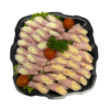 majonees (rapsiõli, vesi, suhkur, LÕSSIpulber, MUNAkollasepulber, SINEPIpulber, paksendaja (tärklis, ksantaankummi), happesuse regulaator (äädikhape, sidrunhape), säilitusained (kaaliumsorbaat, naatriumbensoaat), toiduvärv (beetakaroteen), JUUST(40%), sool, küüslauk (1%) paprika, mädarõigas(mädarõigas, vesi, rapsiõli, suhkur, happesuse regulaator (äädikhape, sidrunhape), sool, antioksüdandid (askorbiinhape, naatriumdisulfiit),jalapeno (jalapeno, veiniäädikas, sool) keedusink (sealiha(69%), vesi, sool, dekstroos, vadakupulber(sh PIIM), sojavalk, tärklis, lõhna-ja maitseained, stabilisaator:E450, E1422 paksendajad: E407, E425, antioksüdant:E300 happesuse regulaator: E451 pärmiekstrakt, säilitusaine:E250